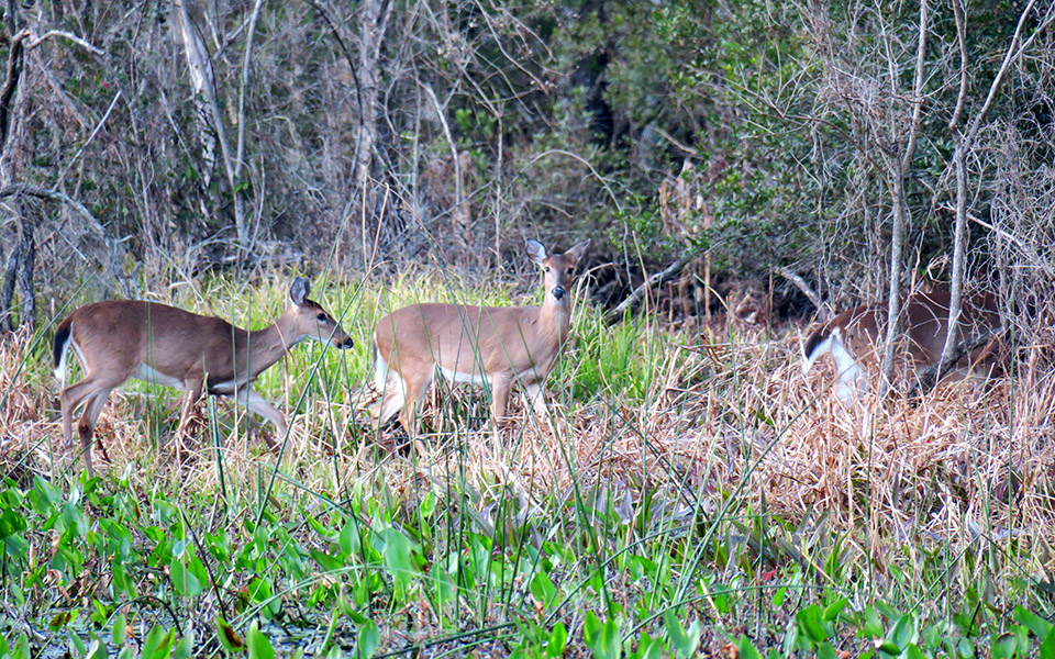 Emerging from the mouth of the world’s largest freshwater spring, the Wakulla River is an Official Florida Canoe Trail and a part of Florida’s Statewide System of Greenways and Trails. This 10-mile long paddling trail is an easy half-day journey through the river’s clear, cool waters (with slow currents making the upstream journey simple for those choosing not to shuttle), but offers an outstanding opportunity to witness the area’s diverse plant and animal life. Paddlers can choose between a three or six-mile paddling excursion, and the current is mild enough to paddle up and down the river for as long as desired. Starting three miles downstream from the spring itself (Edward Ball Wakulla State Park is fenced off to boaters of all kinds), the Wakulla River is wide, nearly straight and lined with cypress trees. Overhead, cormorant, anhinga, osprey and other birds can be seen soaring and nesting in the towering trees. In the water, playful turtles and reclusive alligators are almost certain to be seen while manatee are also possbile when the water is warmer. Featured Uses: Canoeing, kayaking, paddle boarding, and fishing. Dogs are not permitted. Access: From Tallahassee Take Hwy 363 (Woodville Hwy.) 18 miles south to State Rd. 98 (Coastal Hwy.) turn right follow to the west 2 miles. It is located on the left side before the bridge at the Wakulla River. Amenities: Kayak, paddle boarding and canoe rentals are available at the City of St. Marks Wakulla River Park launch point. Restrooms, benches, water access and parking are also available.