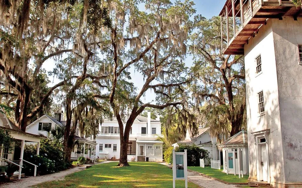 Originally a 1,600-acre cotton plantation, the home is now on the National Register of Historic Places and serves as museum situated on 20-acres of land with centuries old live oaks and gardens. In addition to the main house, there are 20 structures dating from 1835 to 1925. The main house features original family furnishings, porcelain, textiles, glassware and art.